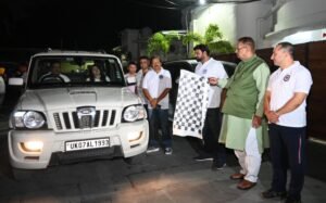 देहरादून, 25 सितंबर। कैबिनेट मंत्री गणेश जोशी ने चंडीगढ़ में 27 से 29 सितंबर तक होने वाले तीन दिवसीय सेंट जोंस ओल्ड बॉयज एसोसिएशन (सजोबा) द्वारा आयोजित एडवेंचर मोटर स्पोर्ट्स रैली के प्रतिभागियों को औपचारिक रूप से टीम के सदस्यों को फ्लैग ऑफ कर रवाना किया। यह मोटर स्पोर्ट्स रैली चंडीगढ़ से पंजाब, हिमाचल, हरियाणा होते हुए चंडीगढ़ समापन किया जाएगा। इस रैली में विभिन्न राज्यों के टीमें प्रतिभाग करेगी। सजोबा रैली में जिप्सी, मोटर साइकिल, कार वर्ग में टीमें शिरकत कर रही है। इस अवसर पर कैबिनेट मंत्री गणेश जोशी ने सभी प्रतिभागियों को बधाई एवं शुभकामनाएं दी।