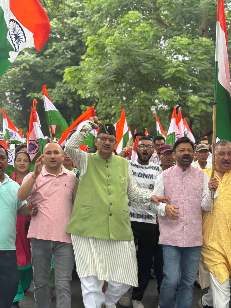 तिरंगा यात्रा में भारी बारिश के बावजूद सैकड़ों की संख्या में मातृशक्ति, पूर्व सैनिक, युवा, पार्टी पदाधिकारी और स्थानीय नागरिको ने भारत माता की जय के नारों के साथ शामिल हुए।