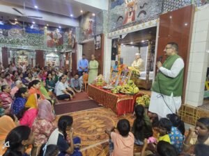 देहरादून, 23 जुलाई। कैबिनेट मंत्री गणेश जोशी ने आज किशन नगर चौक स्थित श्री राधाकृष्ण मन्दिर में आयोजित श्री शिवमहापुराण कथा ज्ञान यज्ञ में प्रतिभाग किया। इस अवसर पर कैबिनेट मंत्री गणेश जोशी ने कथा का श्रवण और भगवान शिव की आरती में सम्मिलित हुए और प्रदेश वासियों की सुख समृद्धि की कामना भी की। कैबिनेट मंत्री गणेश जोशी ने आयोजन समिति की सराहना करते हुए कहा कि ऐसे कार्यक्रम न केवल धार्मिक चेतना को जागृत करते हैं, बल्कि समाज में सकारात्मकता एवं नैतिक मूल्यों को भी मजबूती प्रदान करते हैं। इस दौरान कैबिनेट मंत्री गणेश जोशी ने व्यासपीठ पर विराजमान कथा वाचक सुभाष जोशी का आशीर्वाद भी प्राप्त किया।