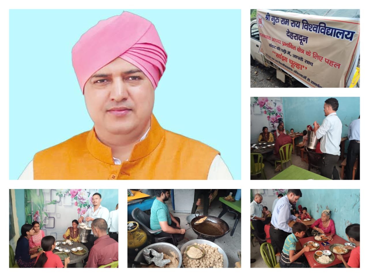 देहरादून। आपदा की विकट घड़ी में जब पहाड़ के लोग संकट से जूझ रहे हैं, तब श्री गुरु राम राय विश्वविद्यालय ने संवेदनशील सामाजिक दायित्व निभाते हुए सहस्त्रधारा क्षेत्र में गुरुवार से ‘सांझा चूल्हा’ की शुरुआत की। इस पहल के माध्यम से आपदा प्रभावित परिवारों को न केवल भोजन उपलब्ध कराया जा रहा है, बल्कि दूरस्थ क्षेत्रों तक भोजन पैकेट भी पहुँचाए जा रहे हैं।