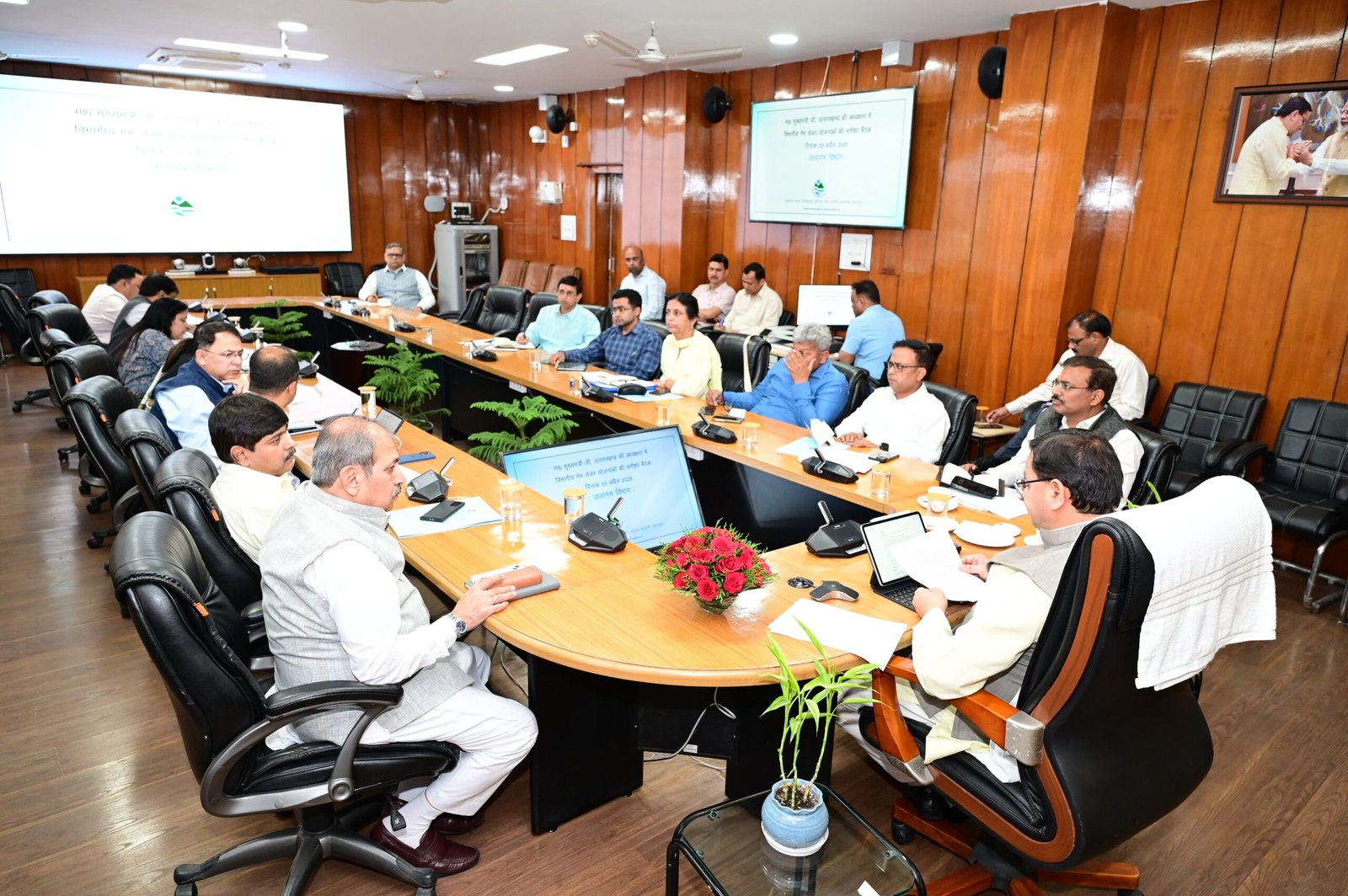 बैठक में उत्तराखण्ड अवस्थापना अनुश्रवण परिषद् के उपाध्यक्ष श्री विश्वास डाबर, मुख्य सचिव श्री आनन्द बर्द्धन, प्रमुख सचिव श्री आर.के सुधांशु, श्री आर.मीनाक्षी सुदंरम, सचिव श्री शैलेश बगोली, श्री रणवीर सिंह चौहान, विशेष सचिव श्री पराग मधुकर धकाते, परियोजना निदेशक जलागम नीना ग्रेवाल, अपर सचिव श्री हिमांशु खुराना एवं सबंधित अधिकारी उपस्थित थे।